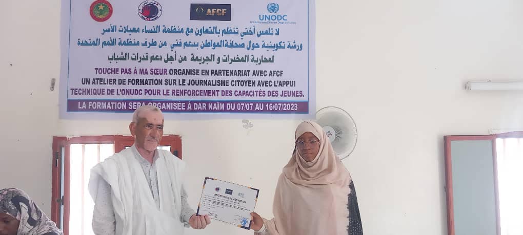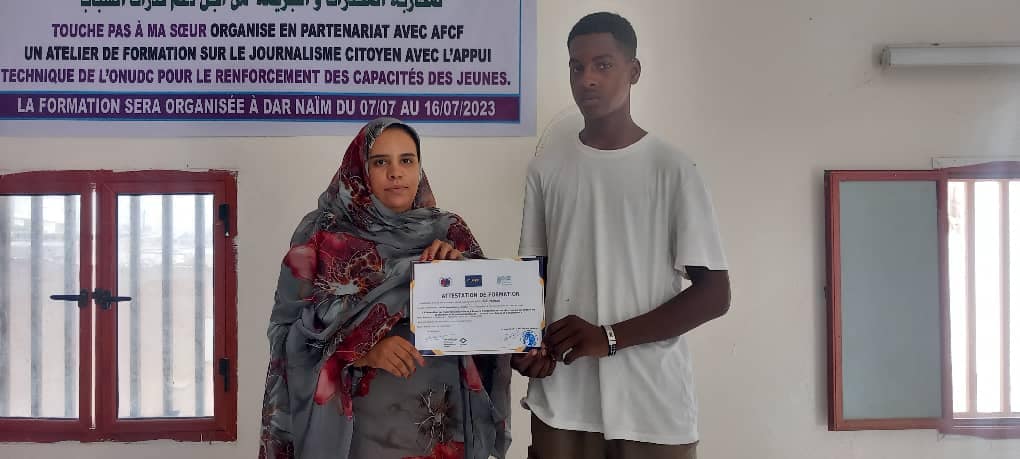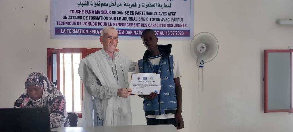 Après la formation de 10 jours sur le journalisme citoyen , les bénéficiaires ont reçu des attestations ainsi que des smartphones et micros cravate pour pouvoir exercer le métier de journaliste citoyen