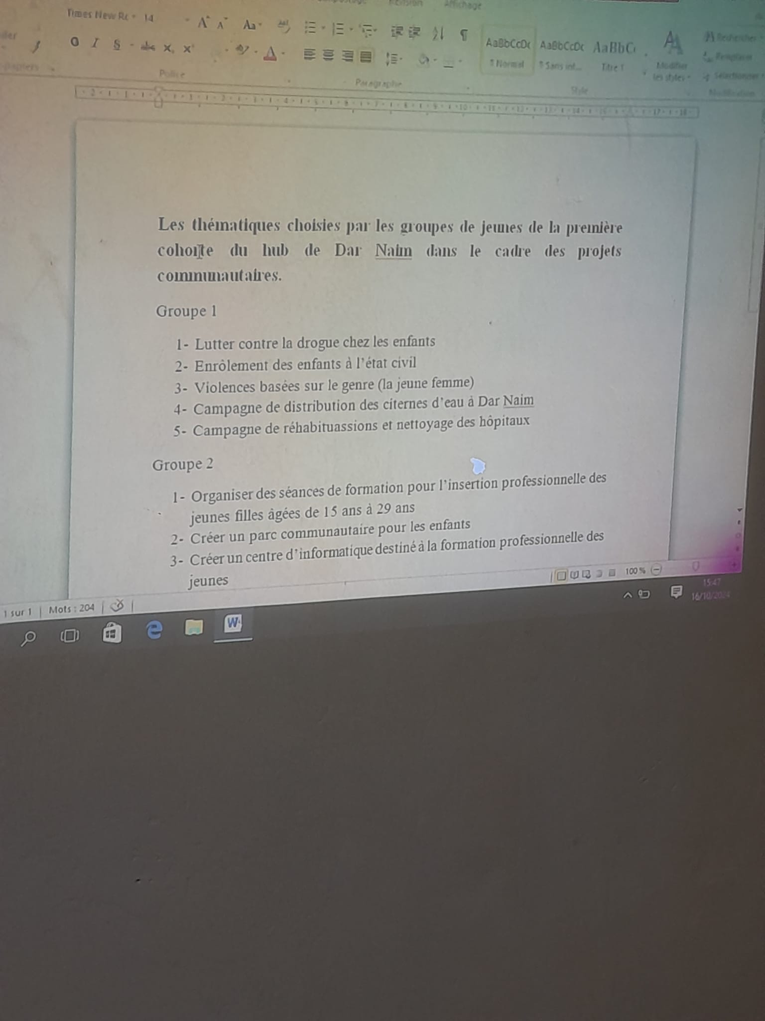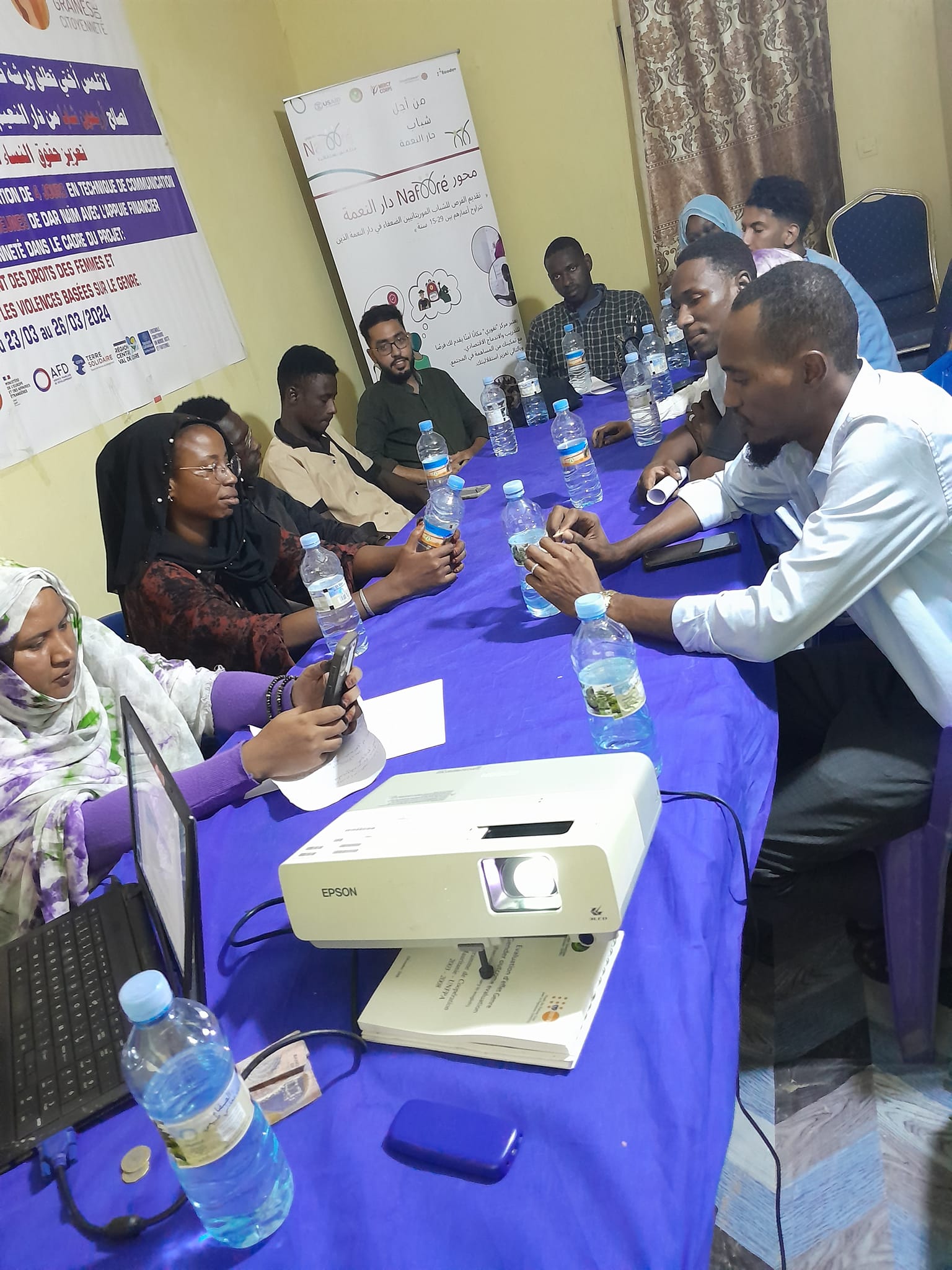 Le comité composé des conseillers jeunes, les formateurs les représentants YSO et 8 jeunes de la première cohorte hub Dar Naim se sont réunis au siège de touche pas ma sœur hier en date su 21/10/2024 pour s'échanger et choisir les 5 meilleurs parmi les 20 thématiques (5 themes par groupe) proposées par les jeunes de la cohorte